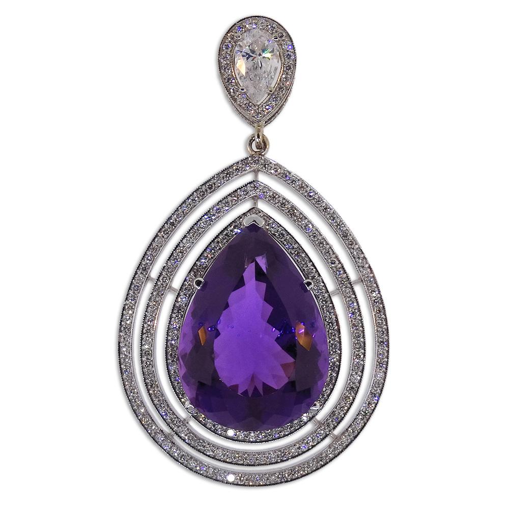 White Gold Natural Amethyst and Diamond Pendant